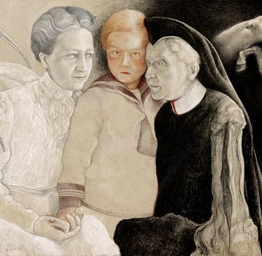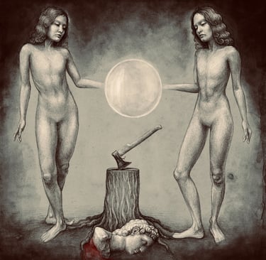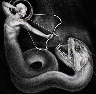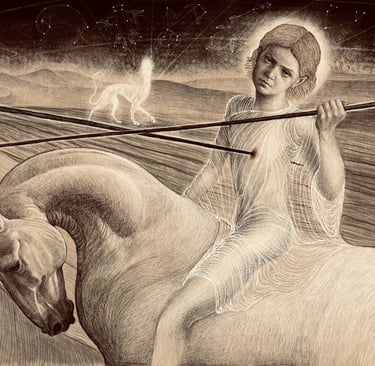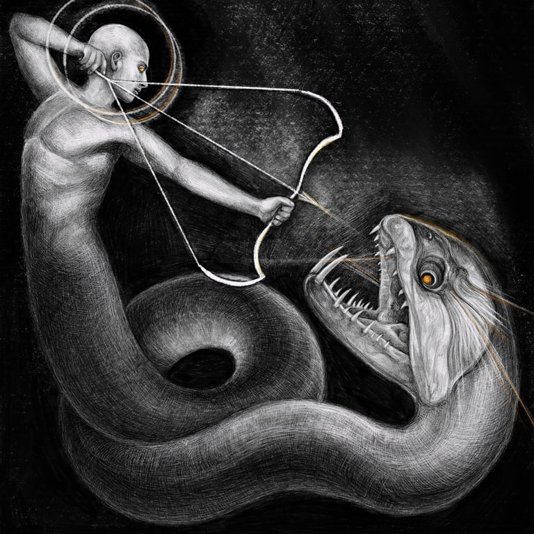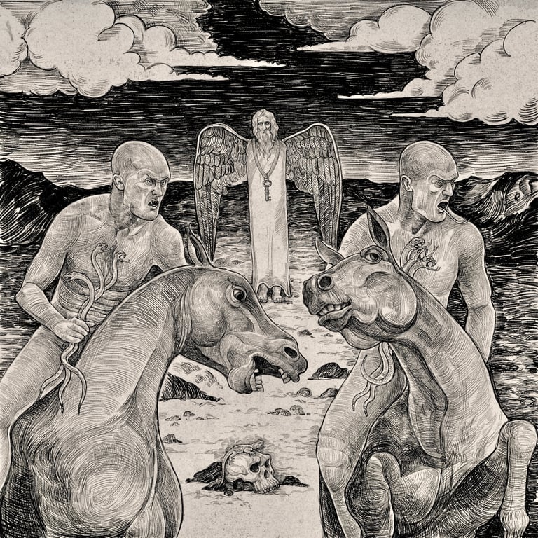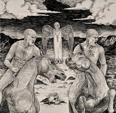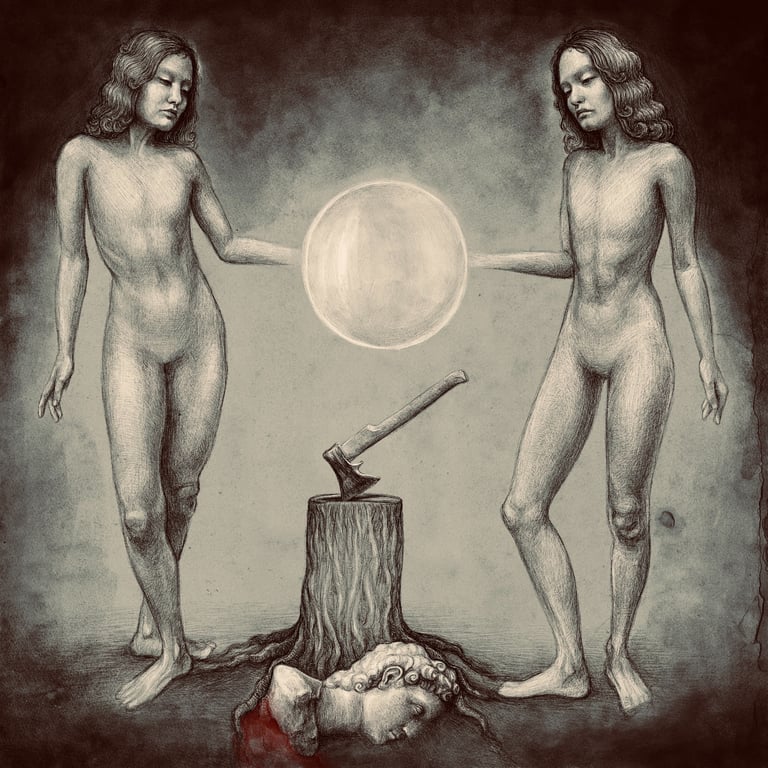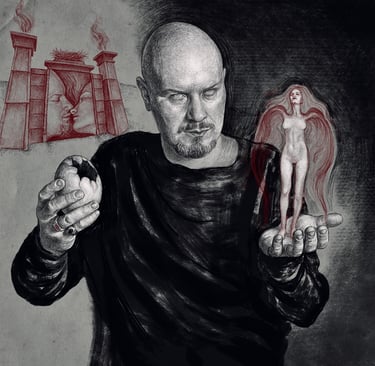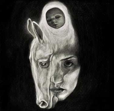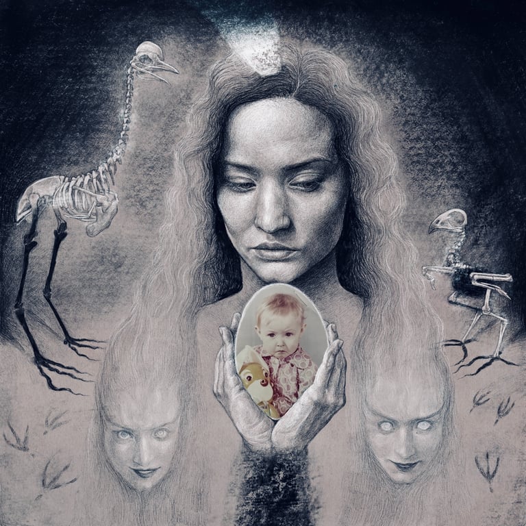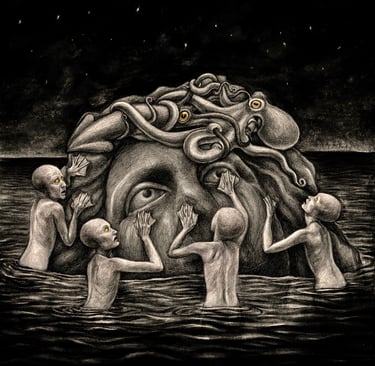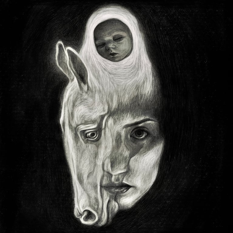 Angelina Filimonov (b. 2000, Novosibirsk, Russia) is a visual artist whose work explores myth as a limit experience, addressing the psychological and spiritual thresholds of the human condition. She works primarily in drawing, using the ballpoint pen and digital mixed media as her principal tools. This choice enables the creation of monochromatic compositions in which restraint of color intensifies emotional and spiritual tension.
